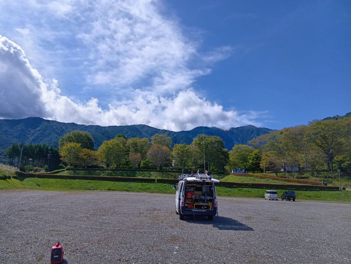 空中線を付けた自動車が停まっている峠があったのだな ひょっとして電波飛ぶのカモ