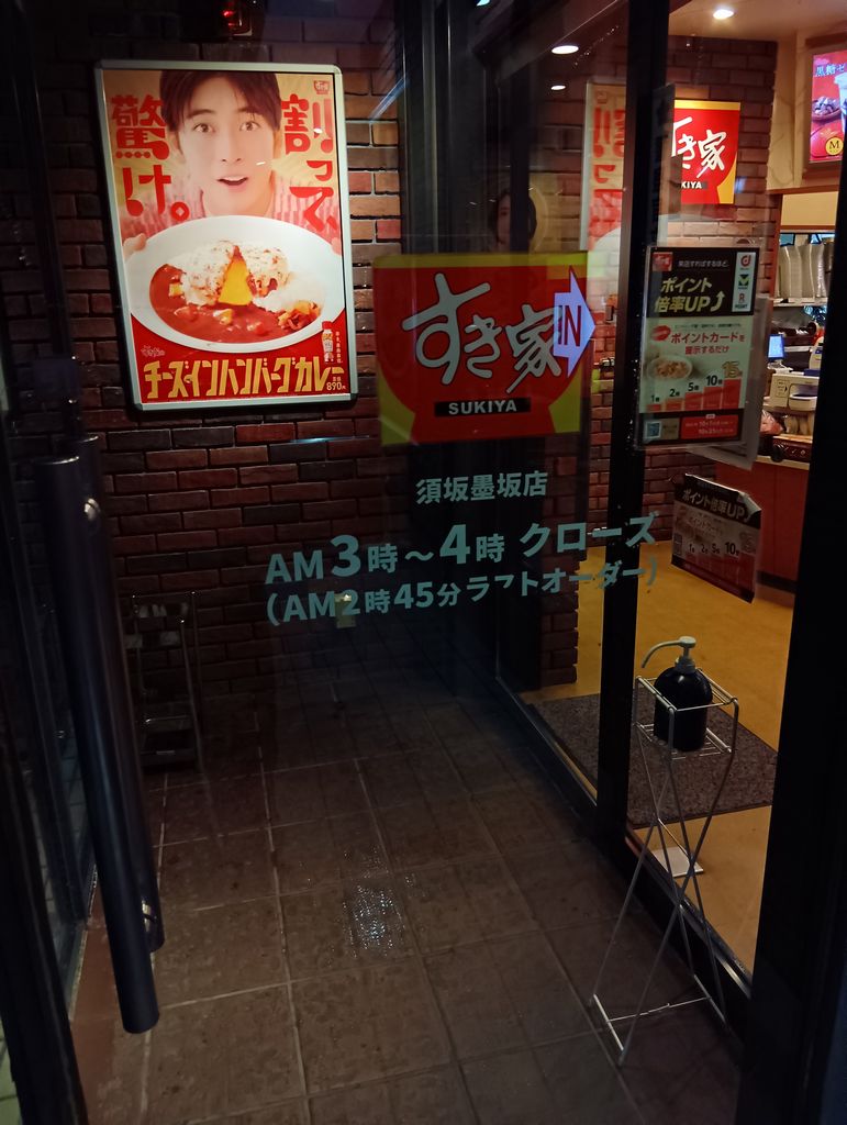 3時40分にすき家須坂墨坂店に行ったら うわ〜 AM 3時〜4時 クローズ